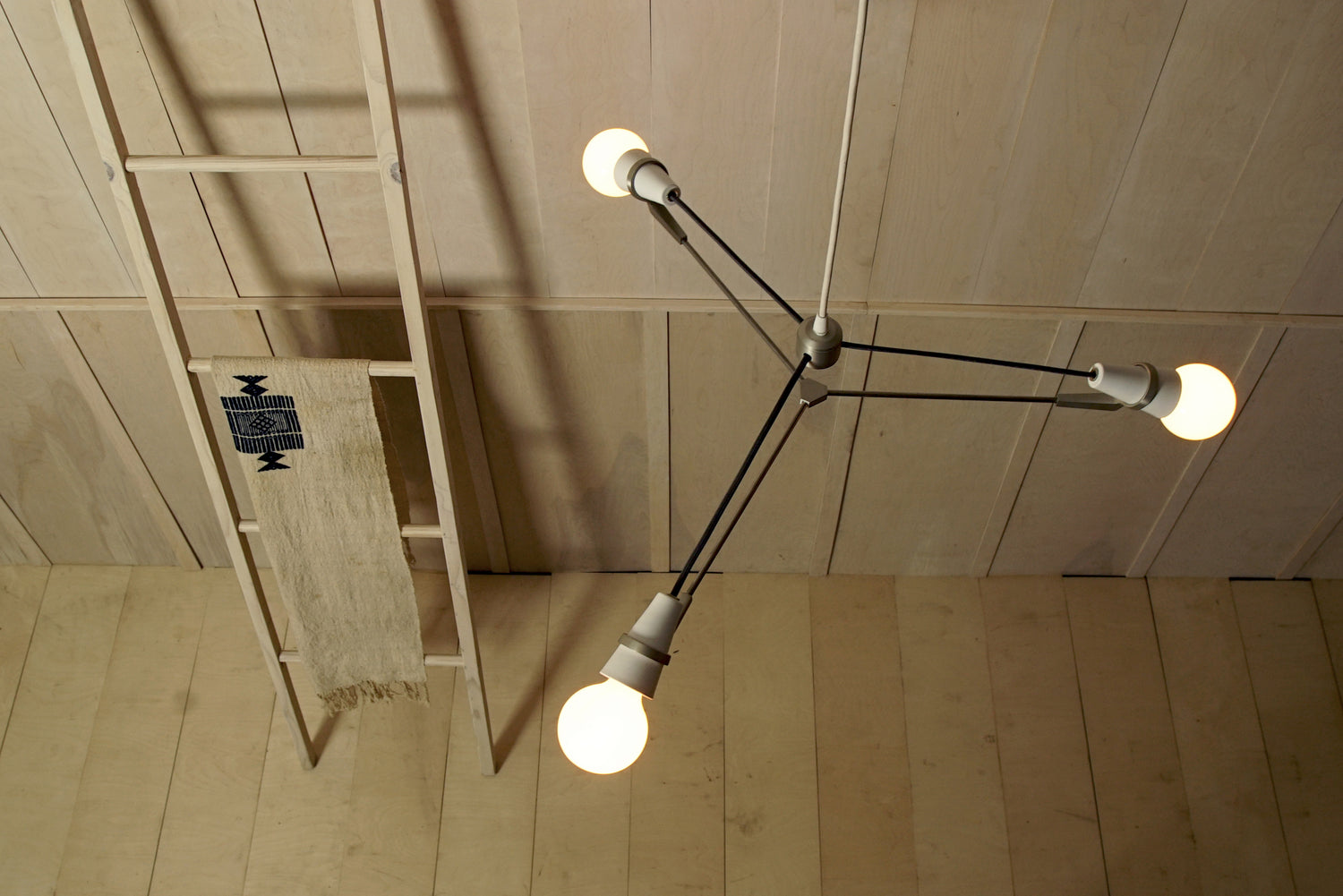 Inspired by Schindler's sacred space and his use of the bare bulb, we designed the Church fixtures to cast light not down, but up and out, with globe lamps exposed and celebrated. The Church Family utilizes a three-part axis of symmetry to provide visual intrigue when viewed from any angle.