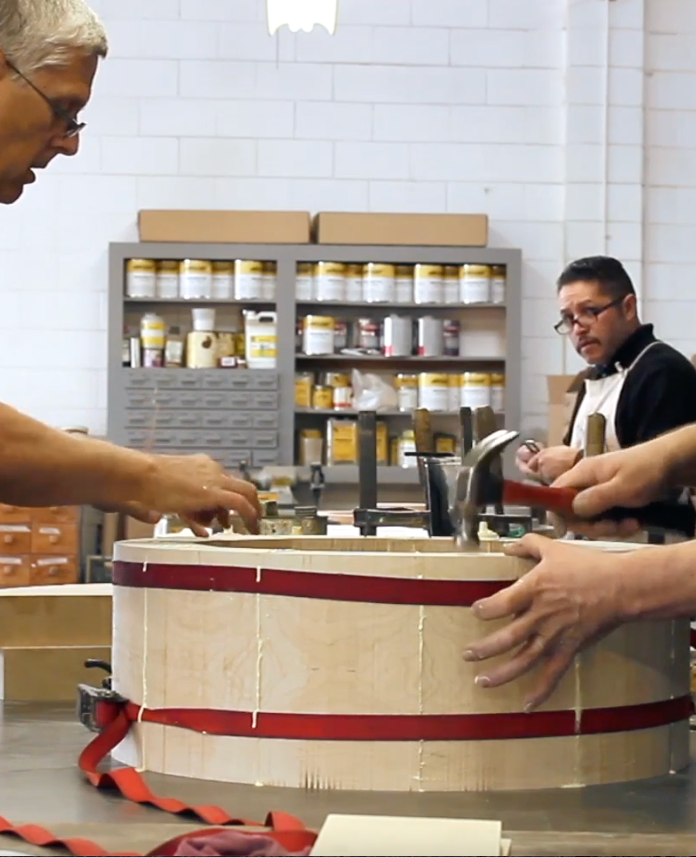 Our Grain Drum is anchored in traditional drum-making techniques. Specifically, building a stave drum.