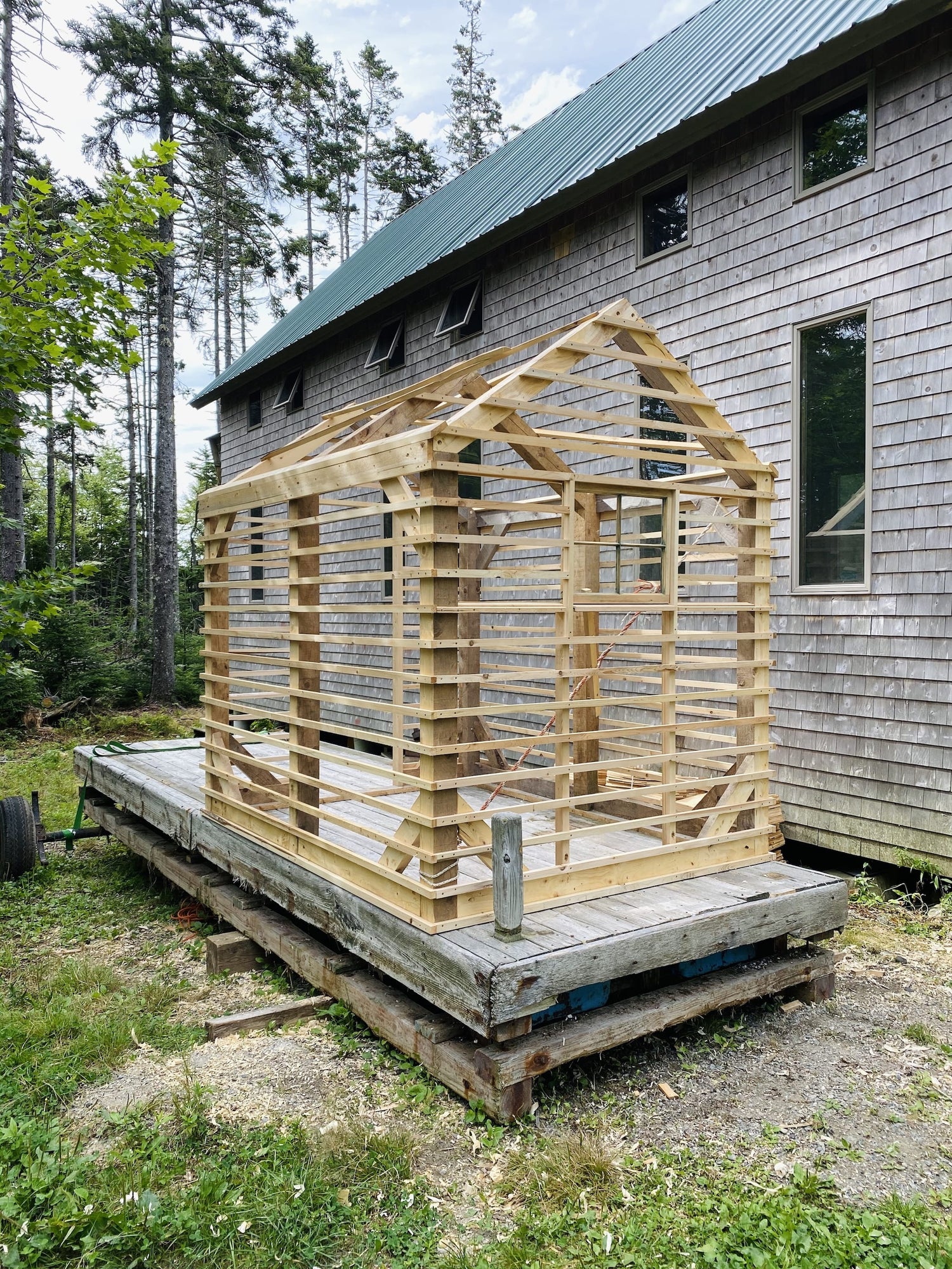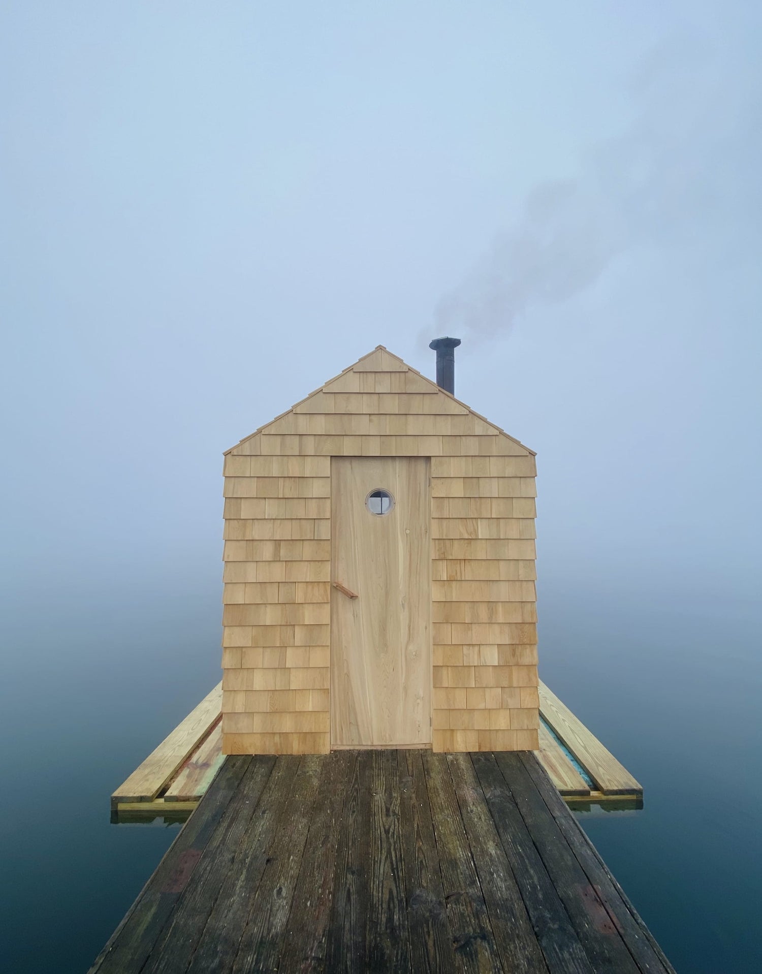 For about 10 weeks a year, the Sea Sauna floats in the Maine harbor where Brendan grew up as a summer kid, then as a year-round lobsterman, then as founder of a wooden boat-building program. It took a few summers of daydreaming about building a sauna to float on the cold waters of Maine before everything unexpectedly fell into place during the pandemic summer of 2020. In one weekend that June, friends offered a sauna stove, a finger float, and a mooring to the cause, and the Saturday work began.