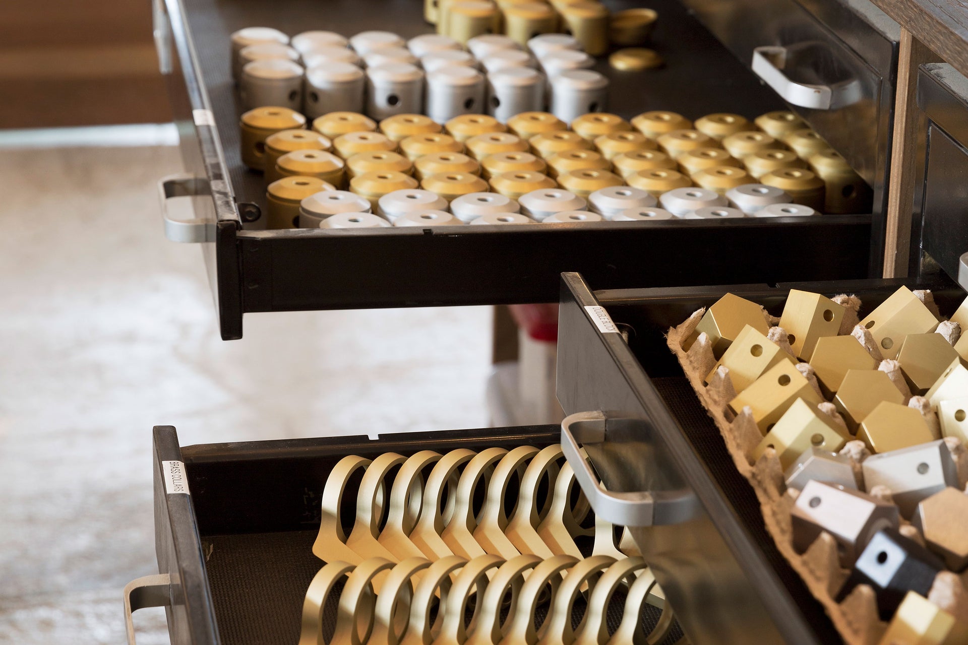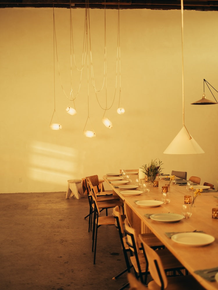 A one-time Capitol Records pressing plant with a streamline moderne edition added in the 1930s, our Studio tells many stories beyond the lights we build here. We've occupied our Studio in Glassell Park since 2016, and in that time we've made the space our own with custom furniture and built-ins to complement the rotating selection of lights that are always on view.