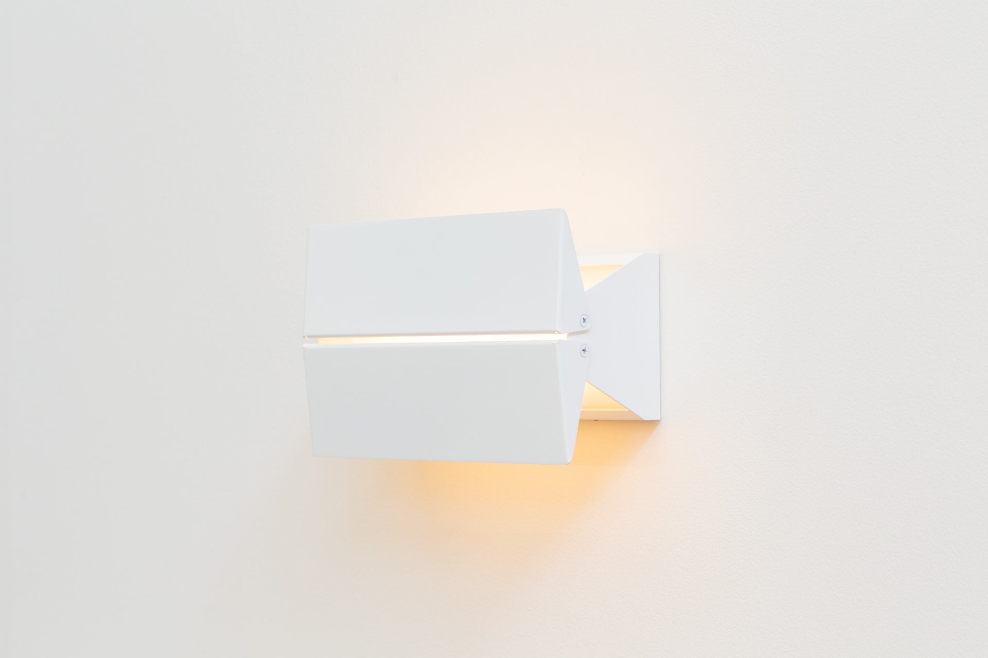 Inspired by Charlotte Perriand’s CP-1 sconce and designed for mass production, the Ada Sconce is well suited to corridors and outdoor walkways, where the repetition of form acts as an accent point to punctuate a space. Solid sheet metal construction with a Warm White integrated LED. Indoor/Outdoor rated.
