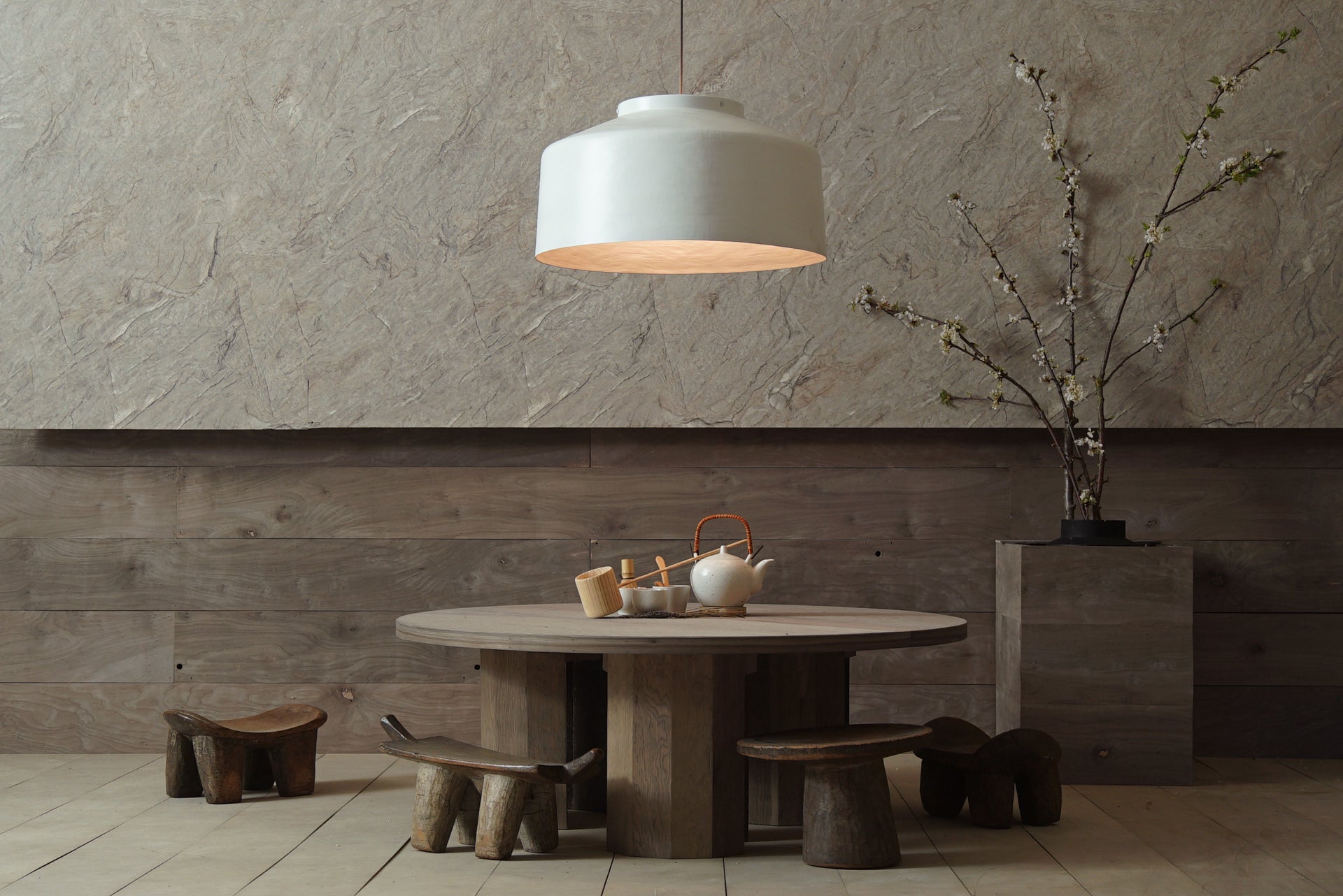 This pendant's book-matched interior grain shows off the lifespan of a tree.