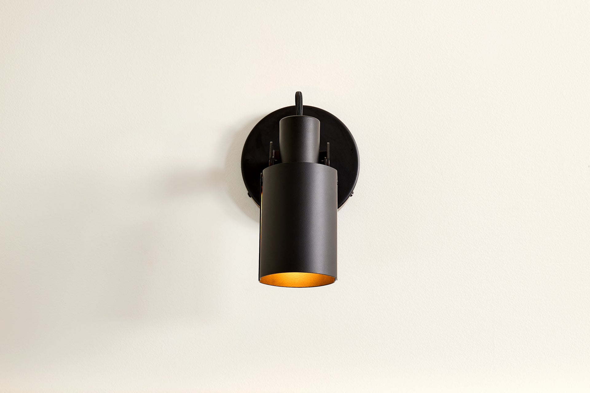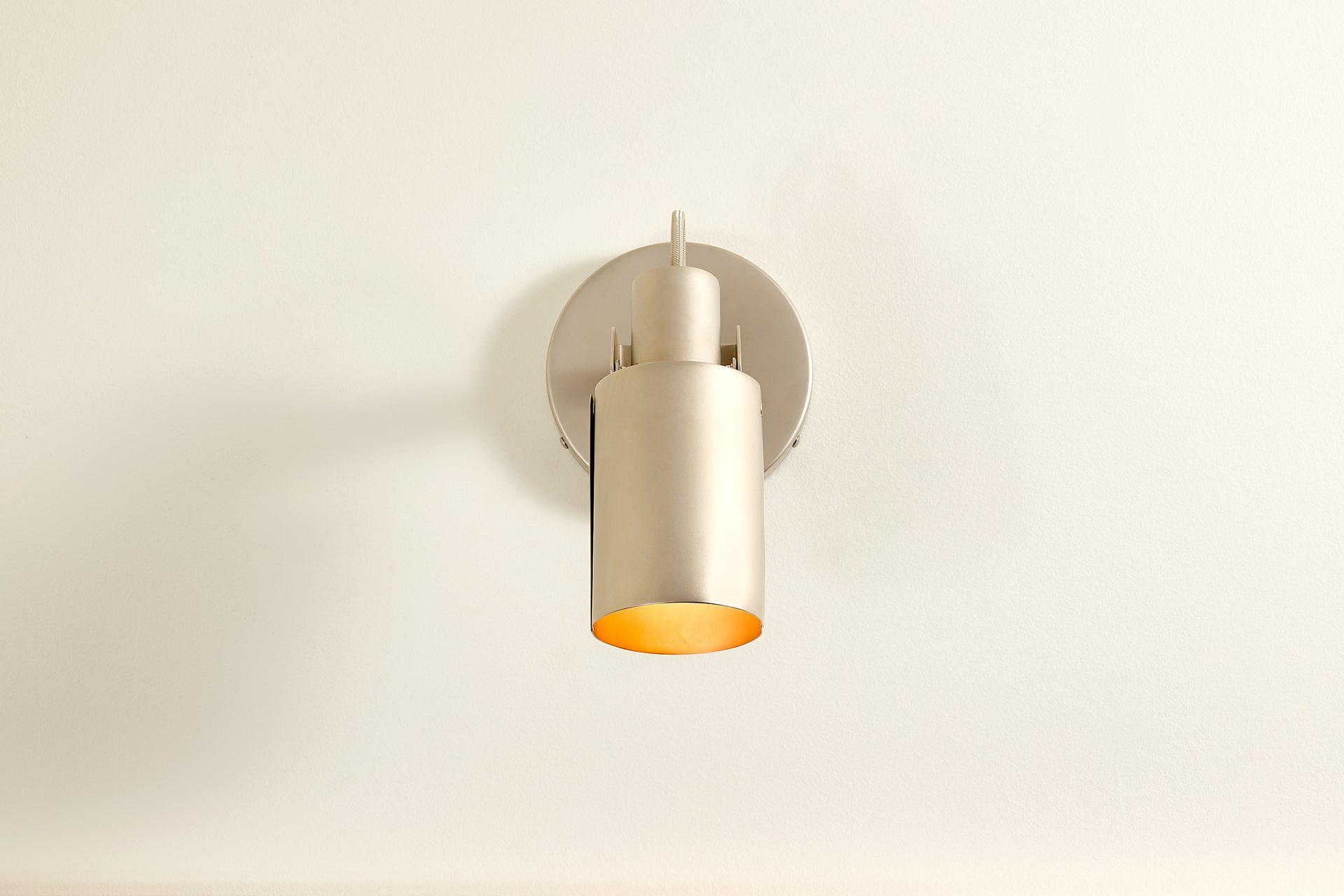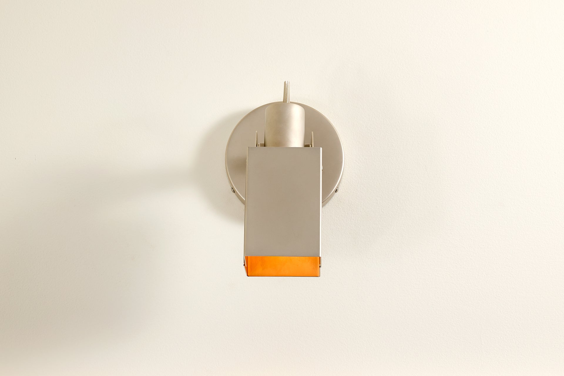A wall-mounted spotlight with a sculptural, interactive form and a satisfying teardrop dimmer switch. A custom clevis enables vertical pivoting, while a custom in-line swivel allows for 350 degrees of rotation. Available in Circle or Square.