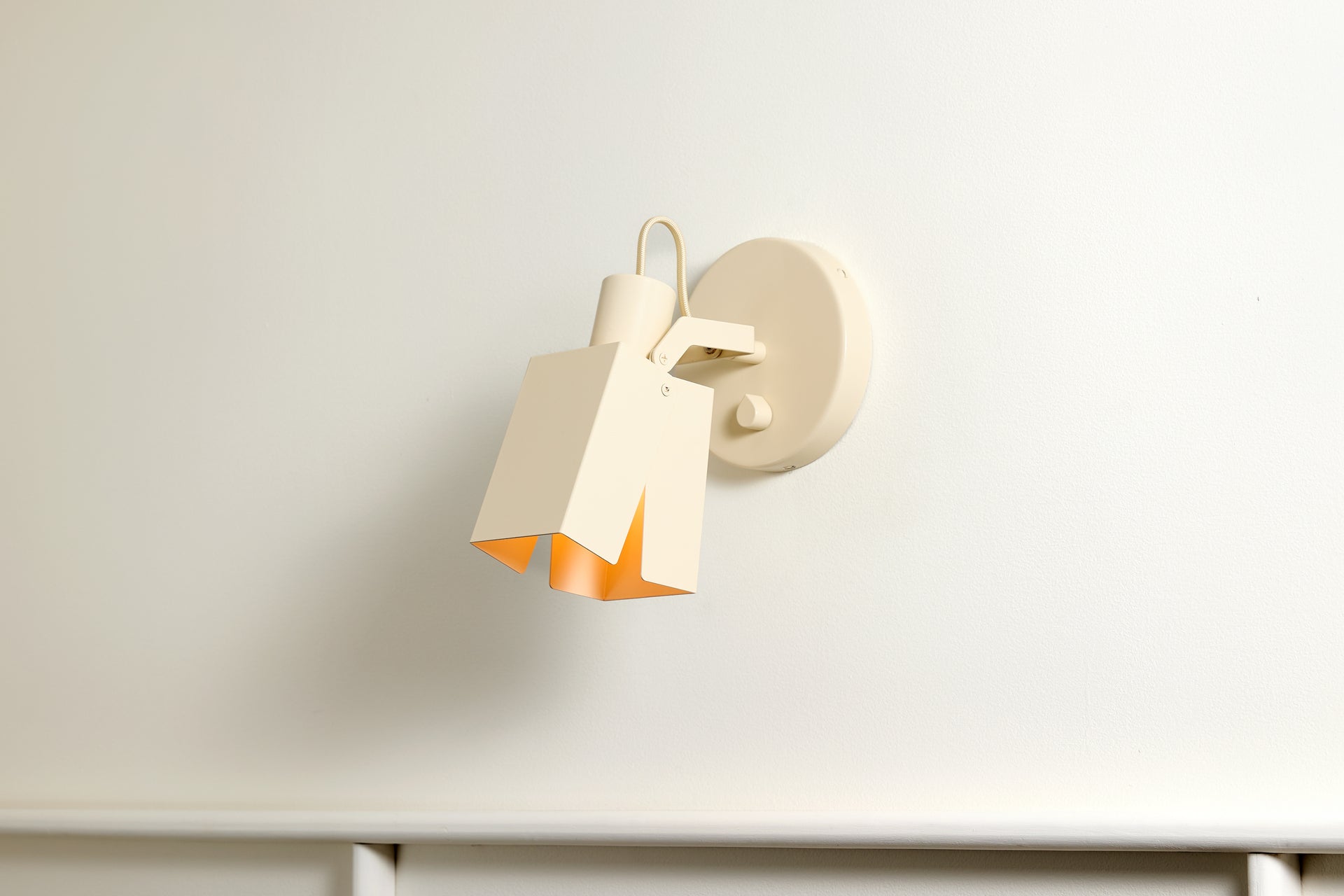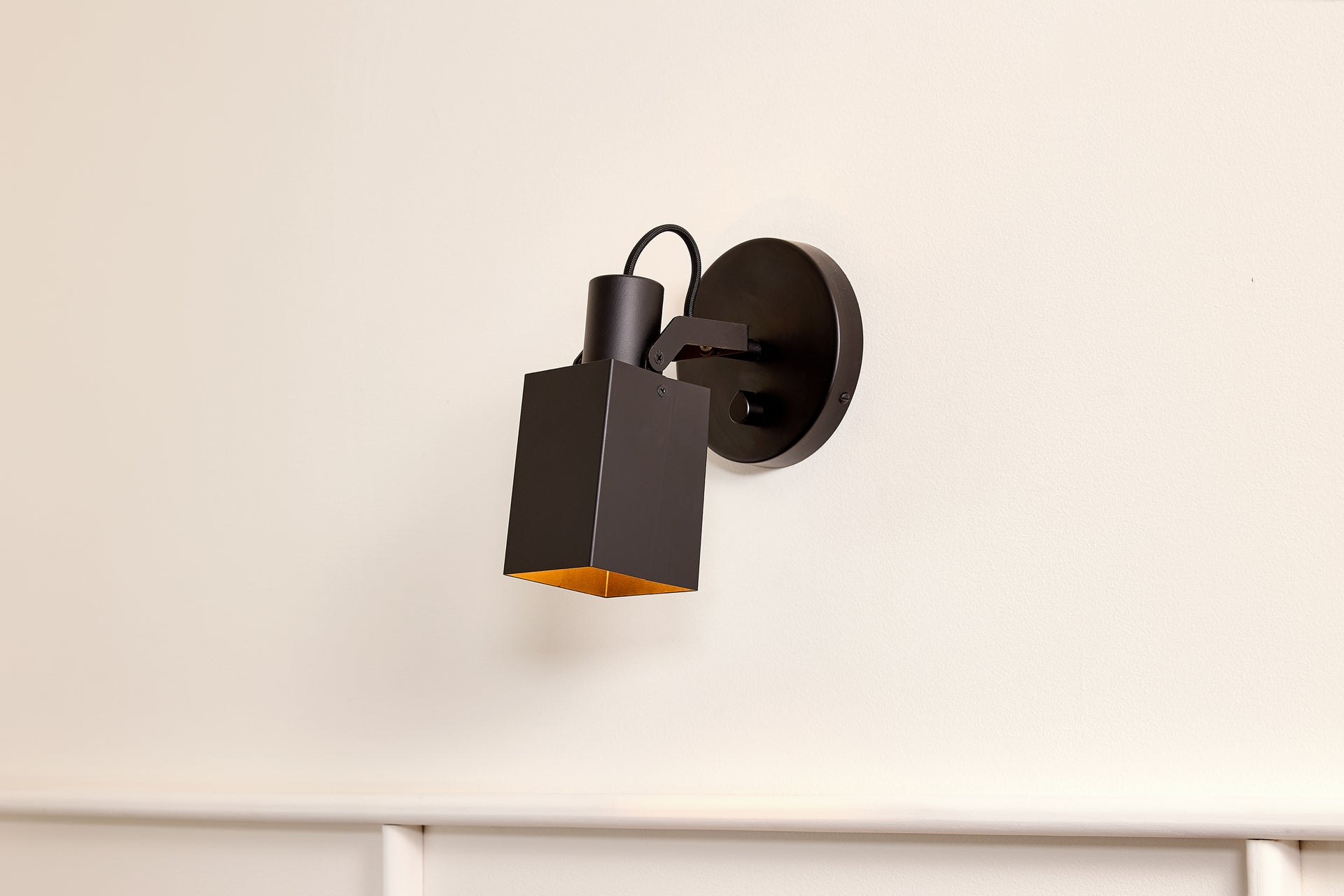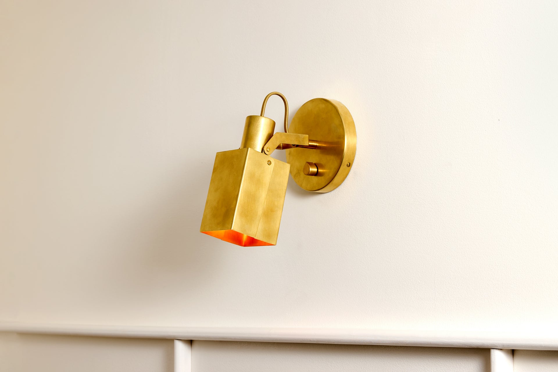 A wall-mounted spotlight with a sculptural, interactive form and a satisfying teardrop dimmer switch. A custom clevis enables vertical pivoting, while a custom in-line swivel allows for 350 degrees of rotation. Available in Circle or Square.