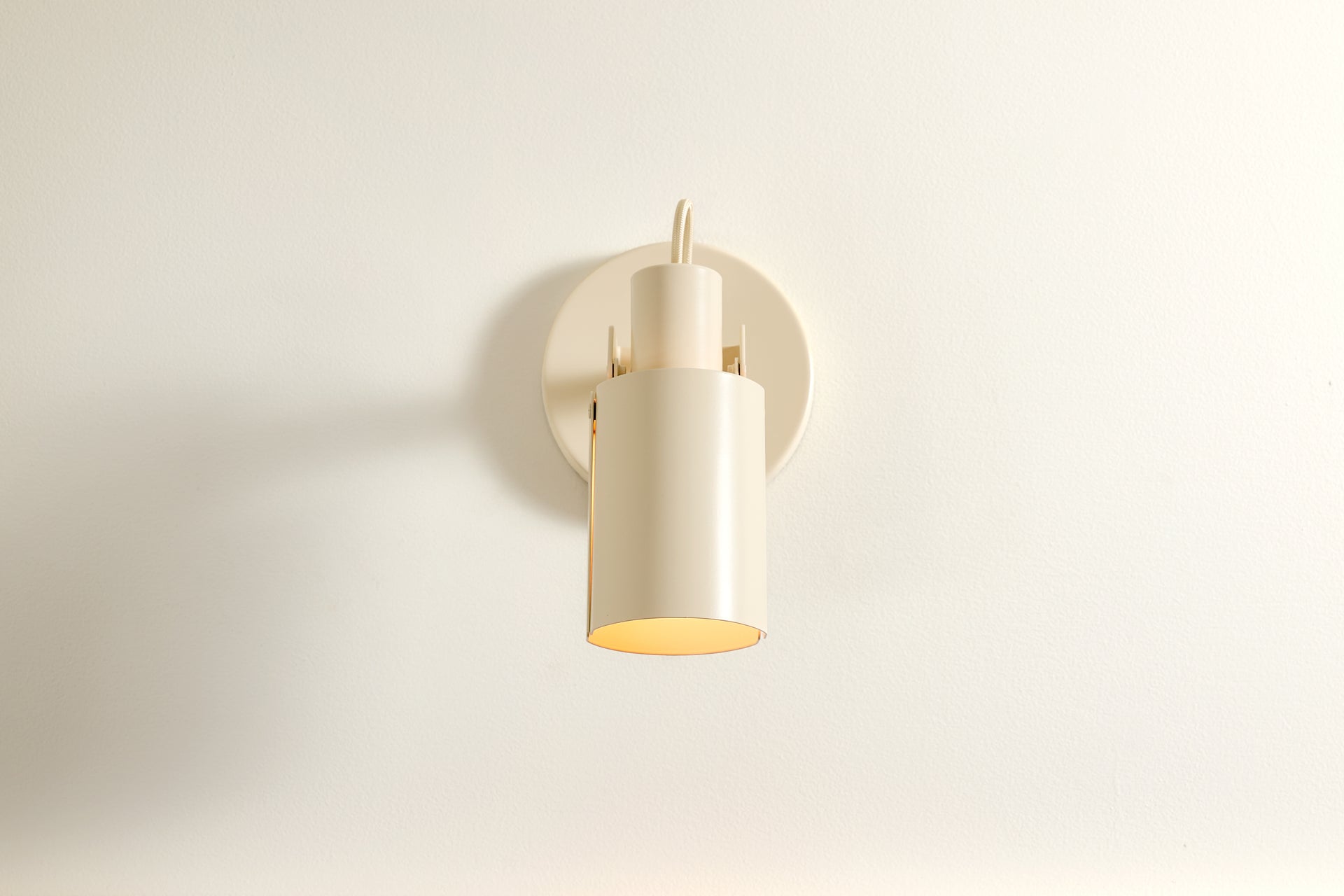 A wall-mounted spotlight with a sculptural, interactive form and a satisfying teardrop dimmer switch. A custom clevis enables vertical pivoting, while a custom in-line swivel allows for 350 degrees of rotation. Available in Circle or Square.
