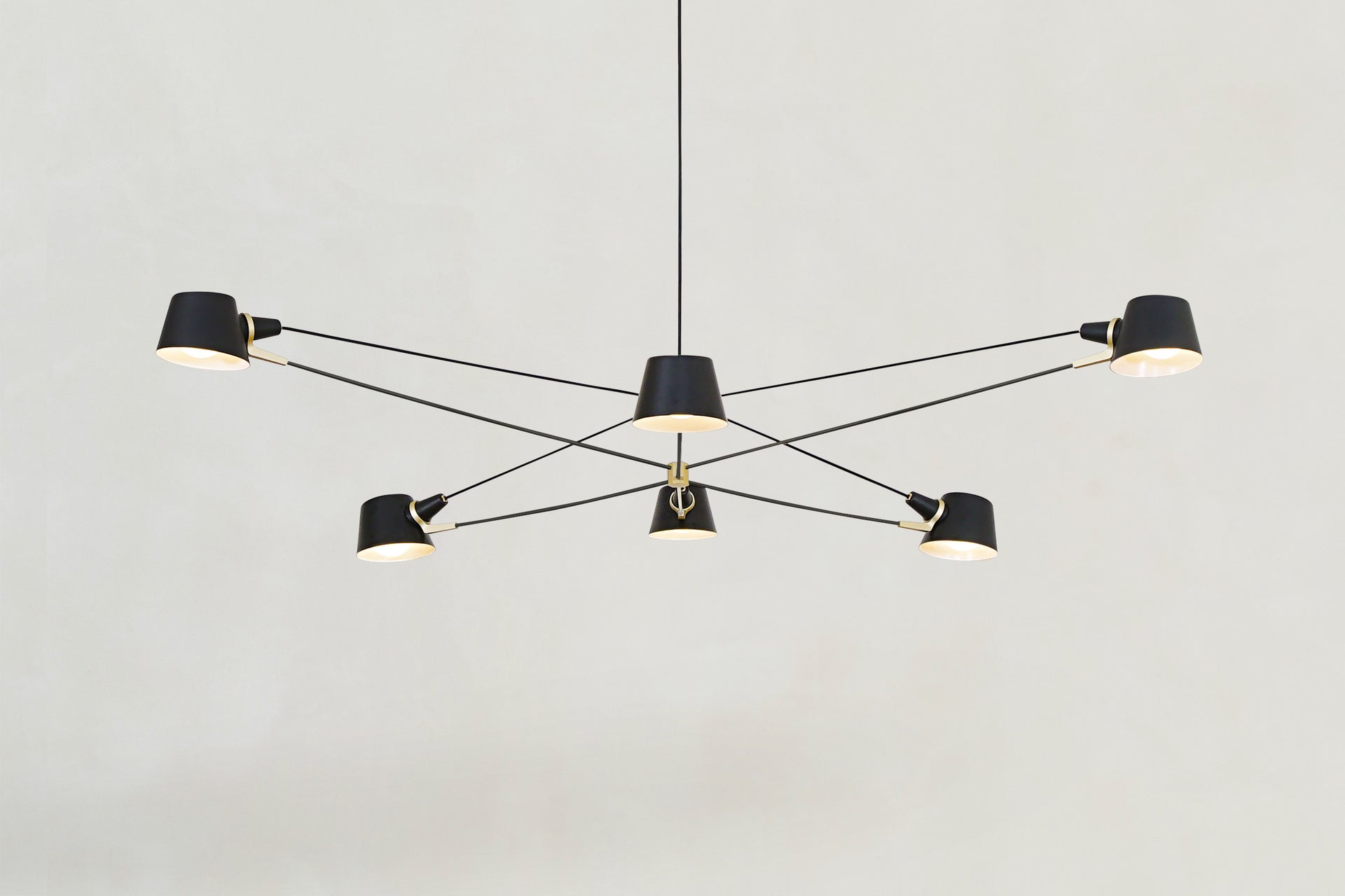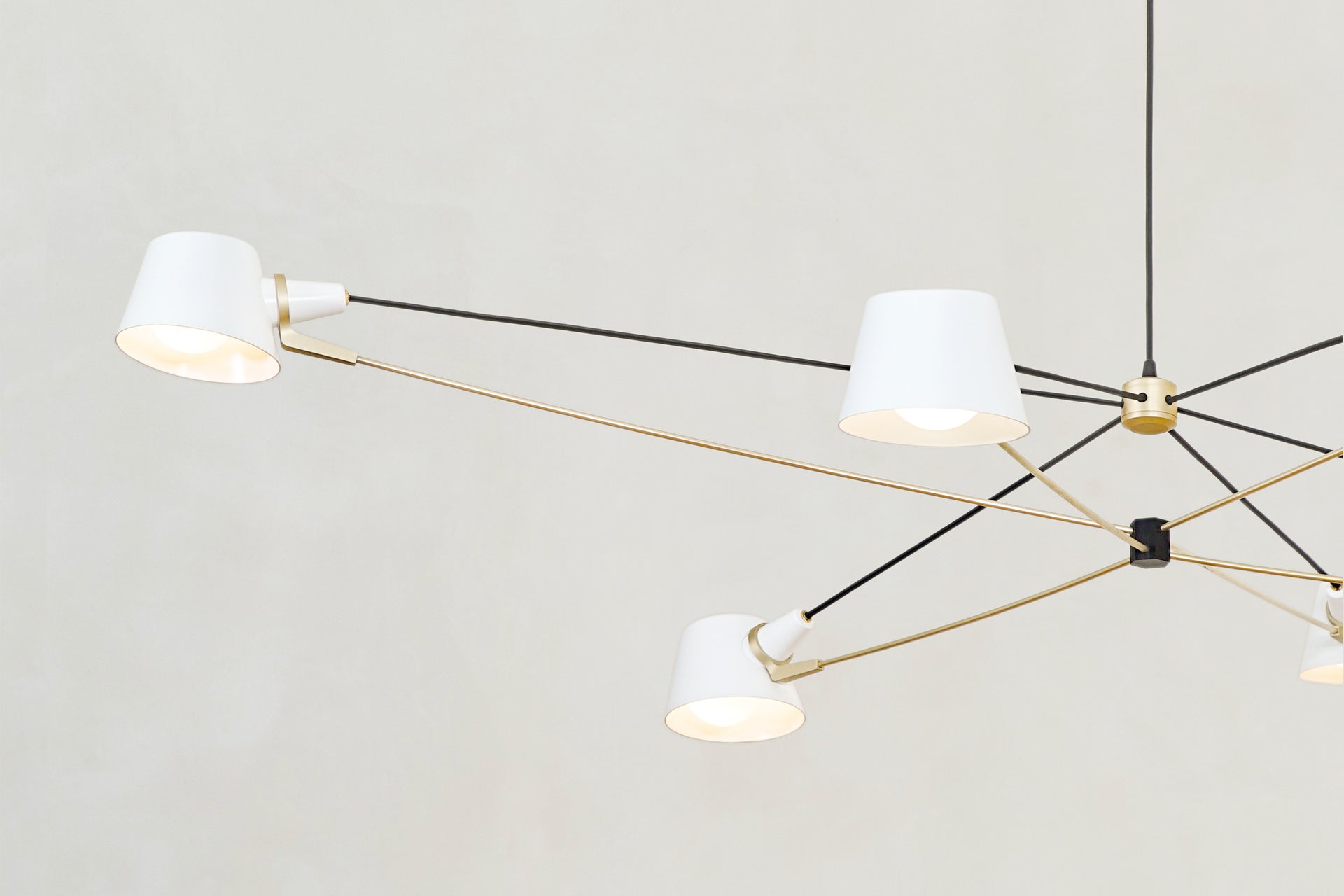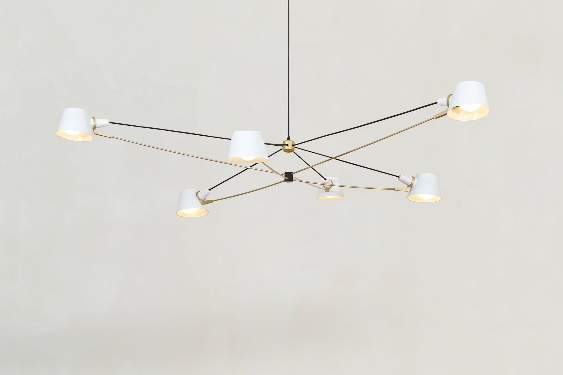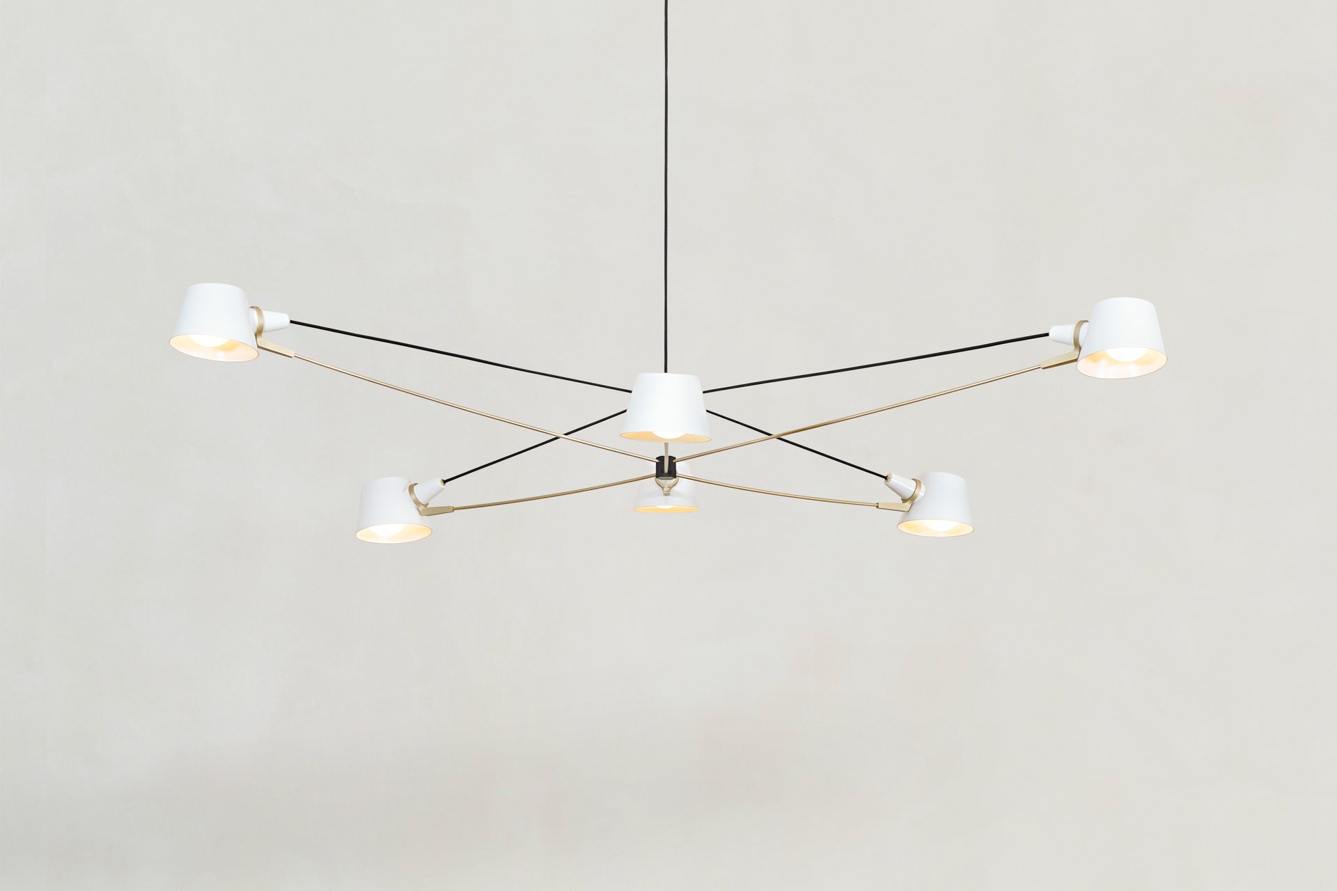 A visually light, well-balanced fixture with the added adjustability of spun metal shades.