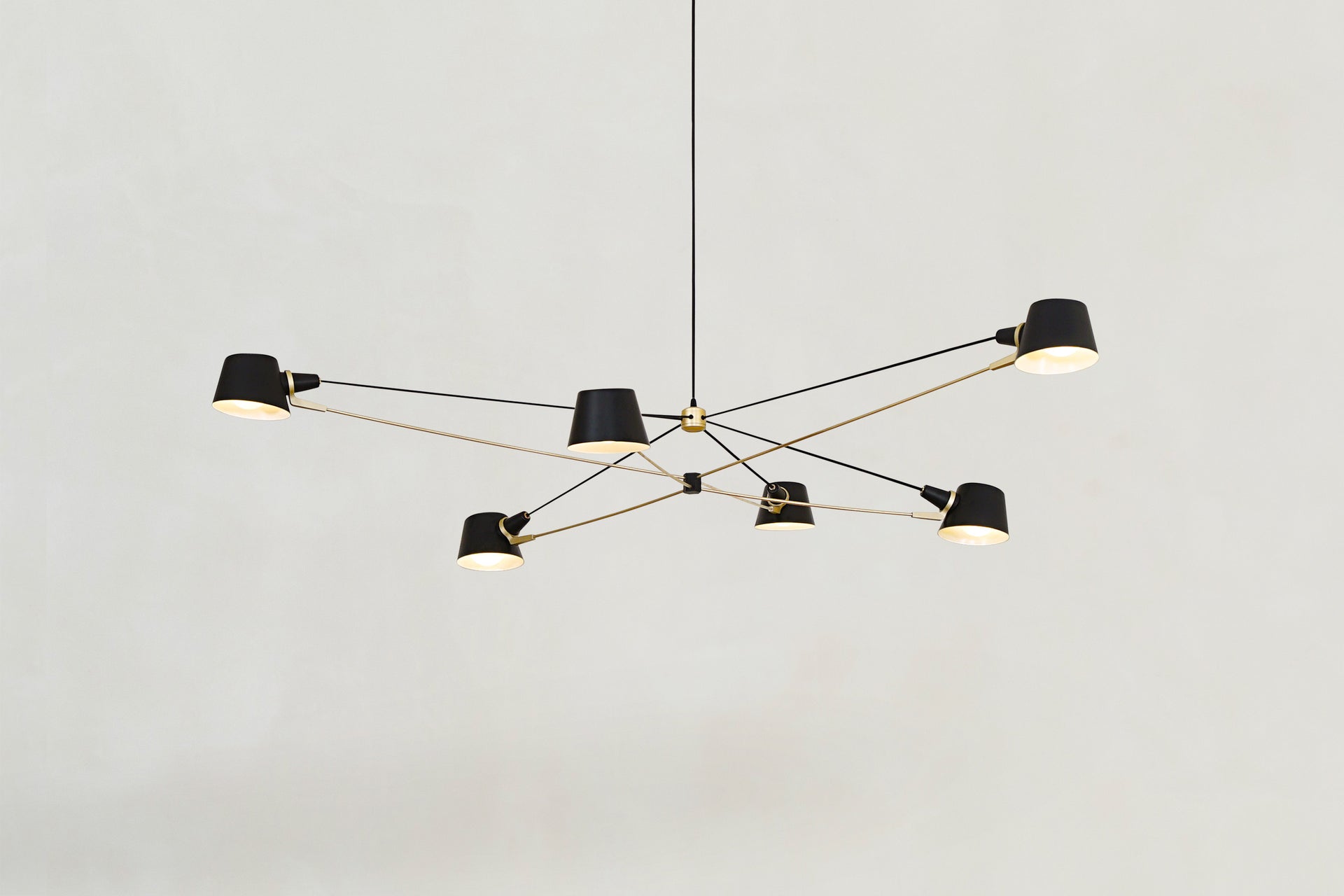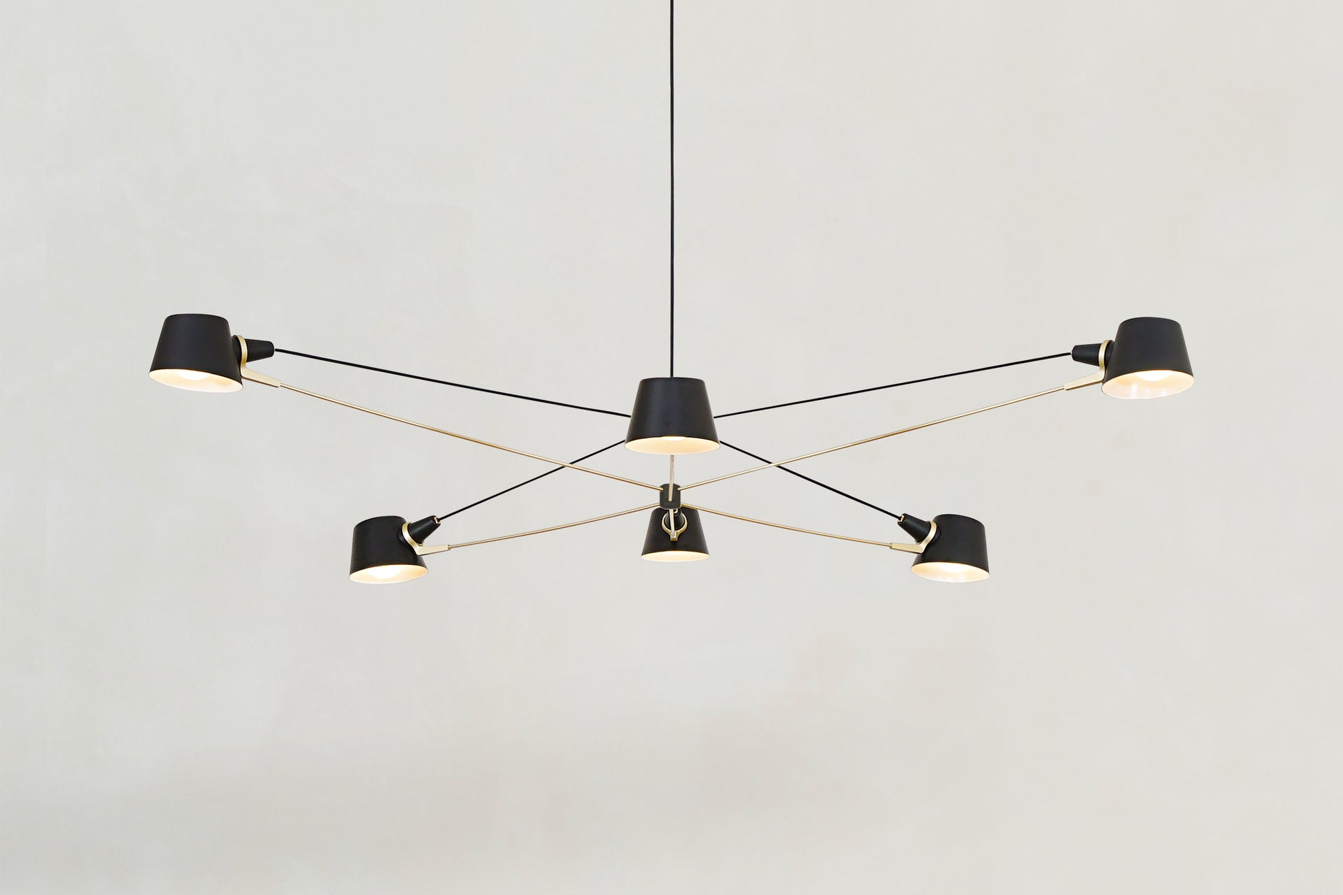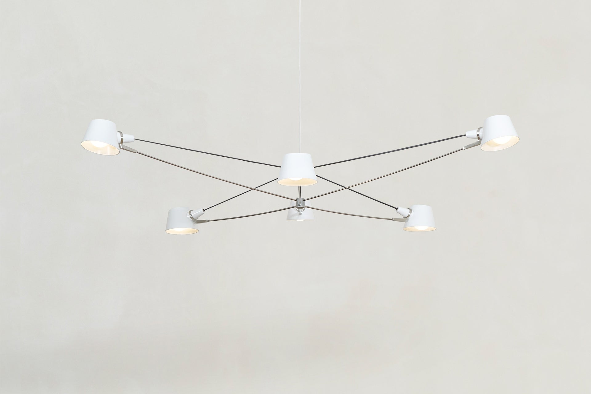 A visually light, well-balanced fixture with the added adjustability of spun metal shades.