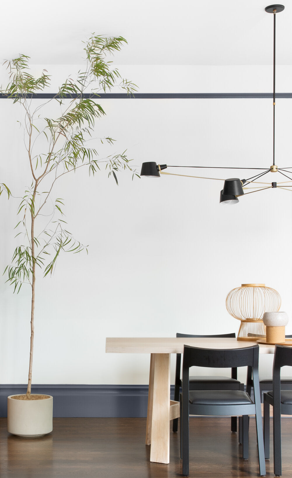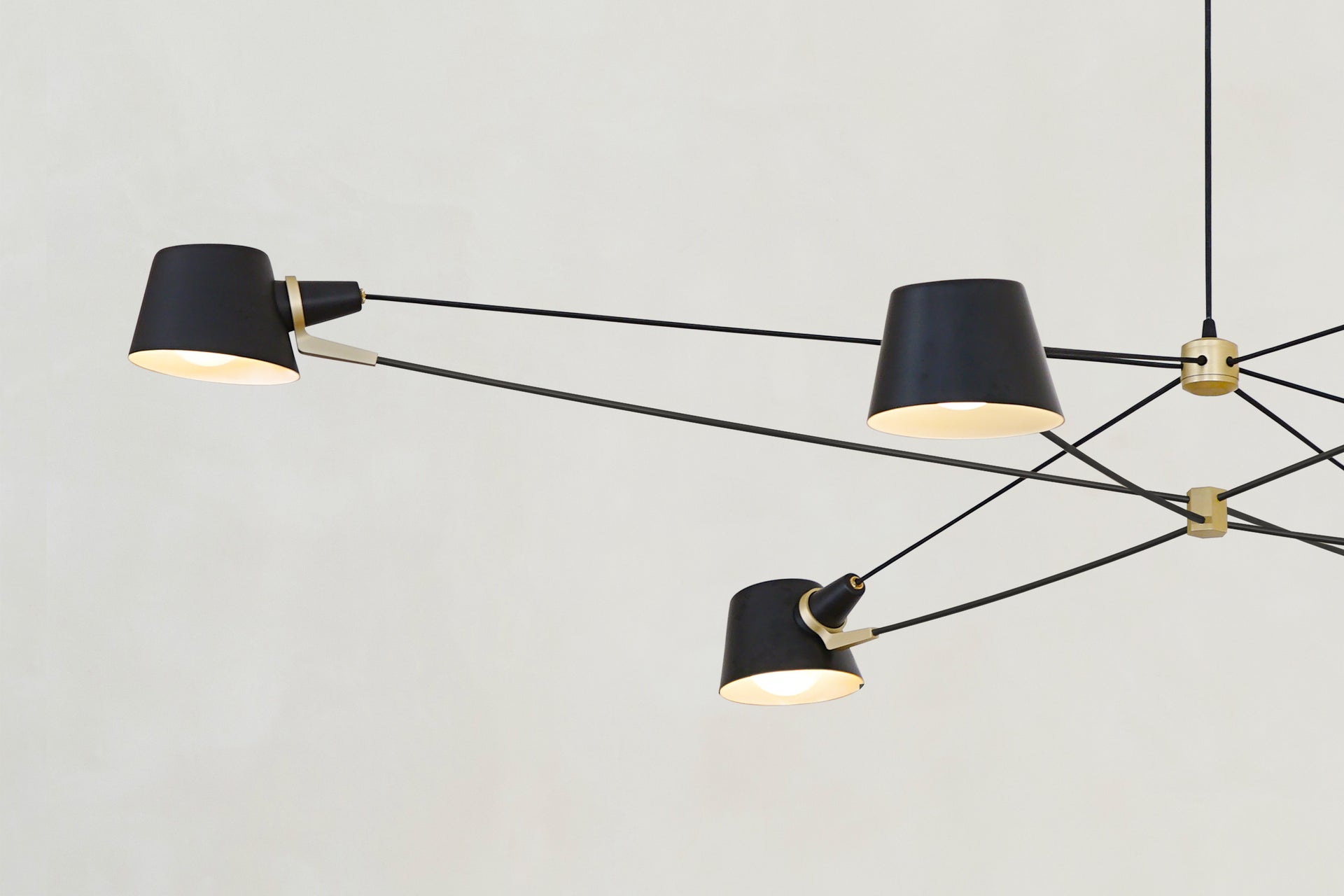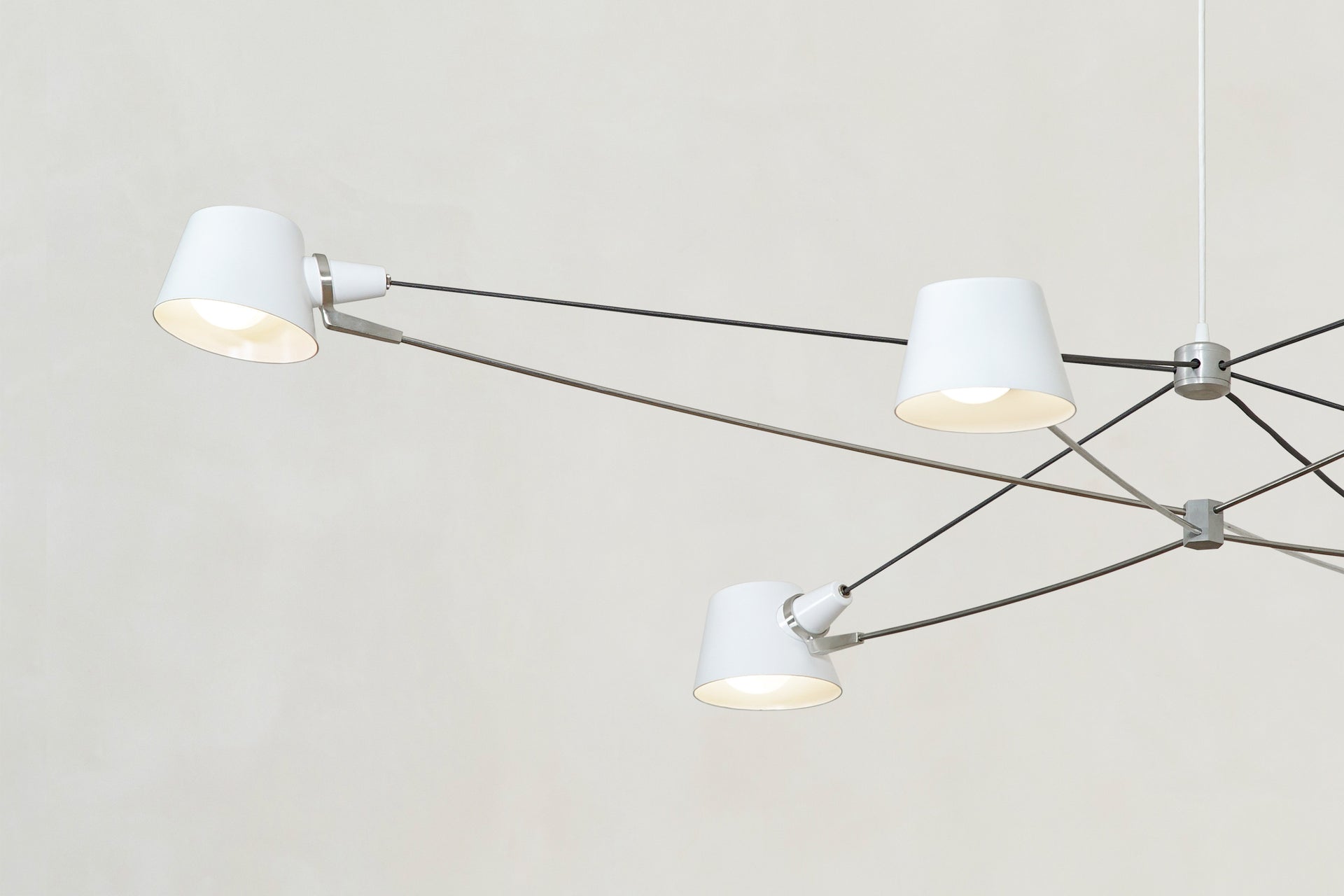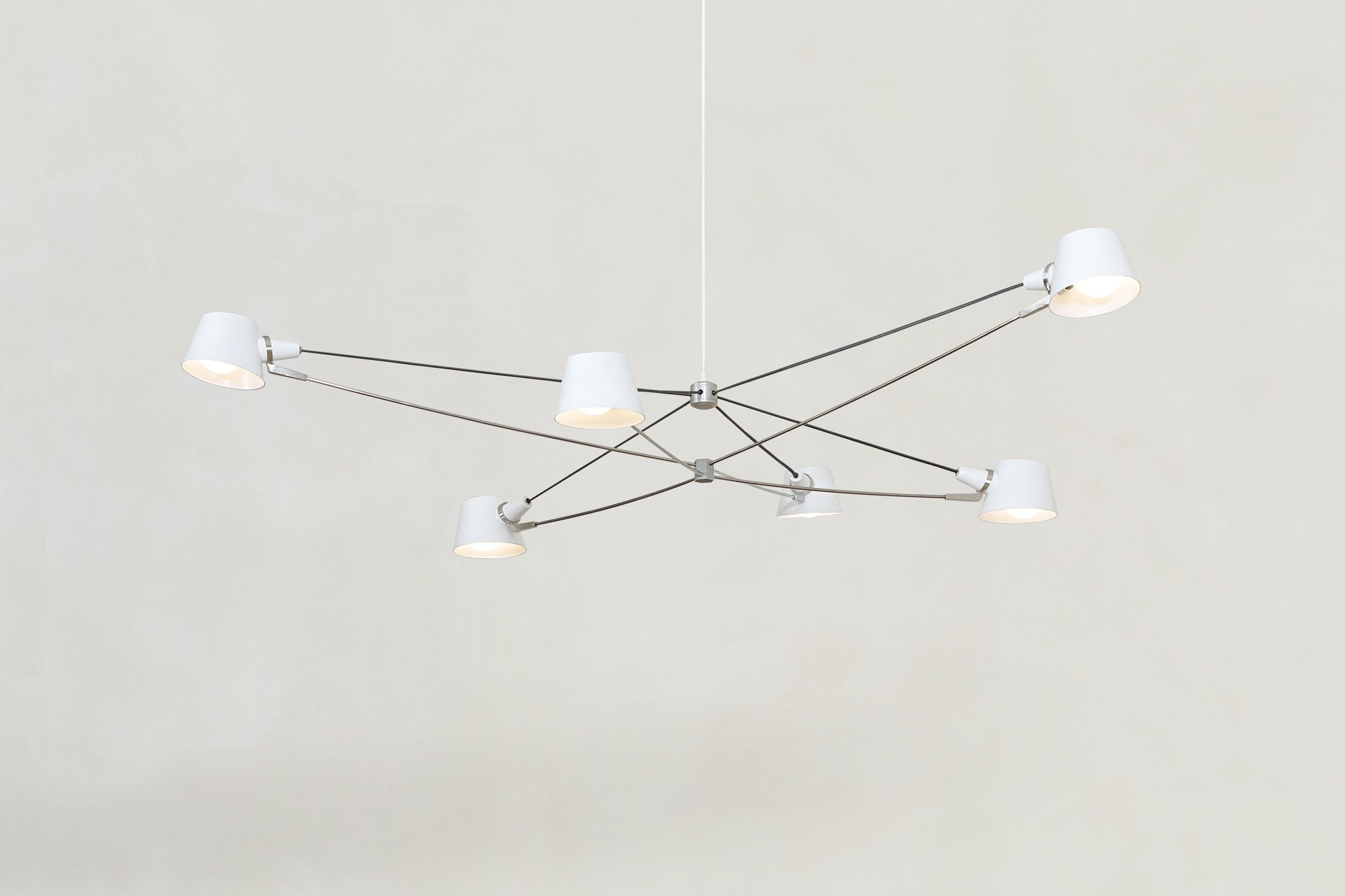 A visually light, well-balanced fixture with the added adjustability of spun metal shades.